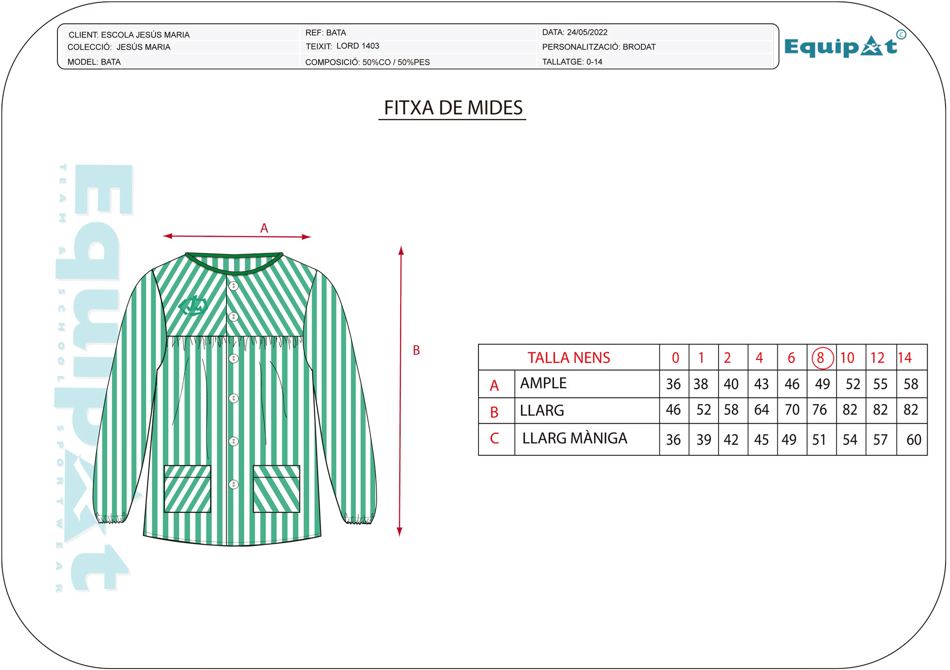 La bata está confeccionada con el tejido lord 1403.