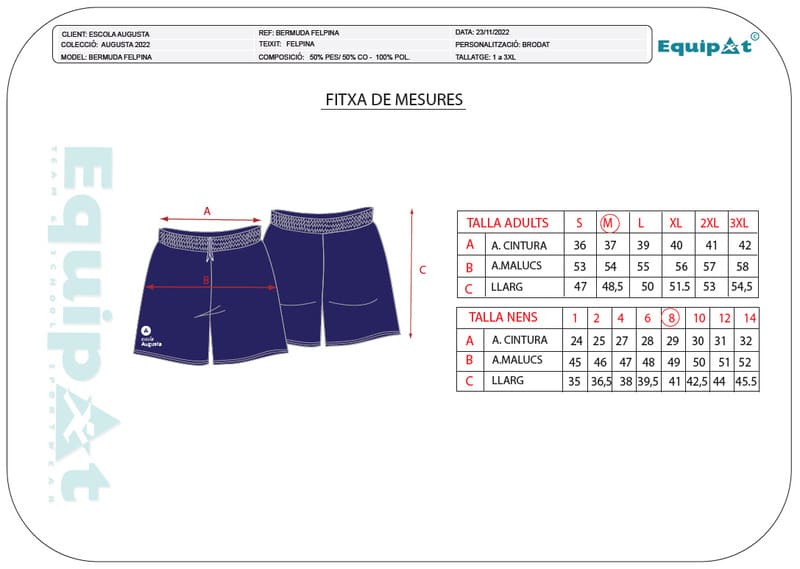 Duu un brodat de 8 cm al camal dret del davant.